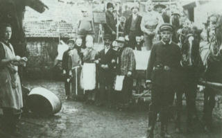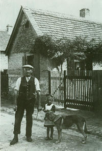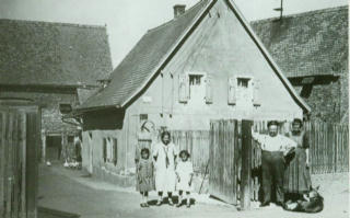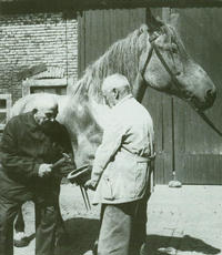 | Familie Menger vor ihrem Haus  am Landdamm | der letzte Ackergaul von Hamm wird vom Seibel-Schmied beschlagen |