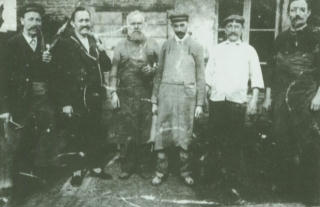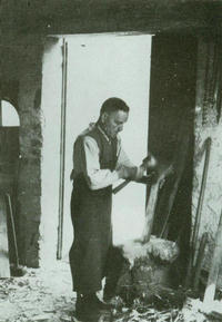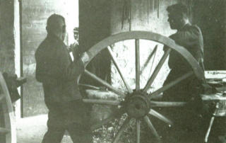 | Metzger Arnold, um 1940  | Wagnermeister Schäfer macht  ein Wagenrad |