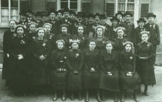 | Jahrgänge 1941 und 1942 aufgenommen 1948 | Jahrgänge 1897/99 Klassenbild von 1913 |