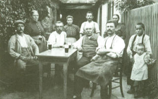 | Mittagspause, vor Hof Gernsheimer Fahrt  | die  Handwerker der Hauptstraße um 1923 |