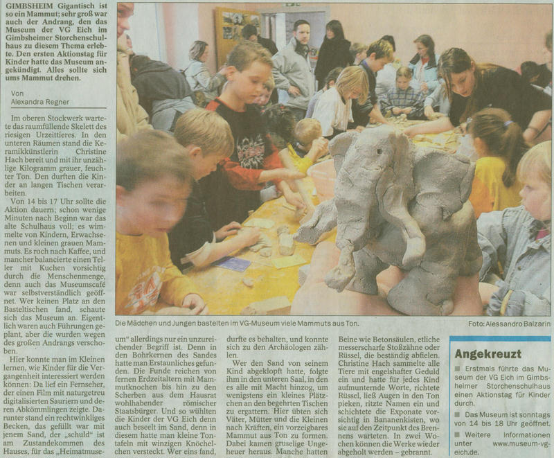 Zeitungsartikel vom 06.02.2006 aus der Wormser Allgemeinen Zeitung Link zu: Bildersammlung / Mammuttag Dort gibt es viele Bilder zu diesem Thema
